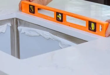 Sink mounting: During installation, your under-mount sink(s), if applicable, will be mounted under your stone. Please keep this in mind when scheduling your plumber to reconnect the water and drain. Also, cook tops and faucets, etc. will be dropped into place for confirmation of fit.