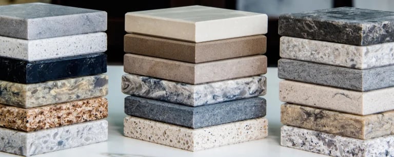 Quartz – is manufactured with a mixture of ground quartz, resins, and pigments.